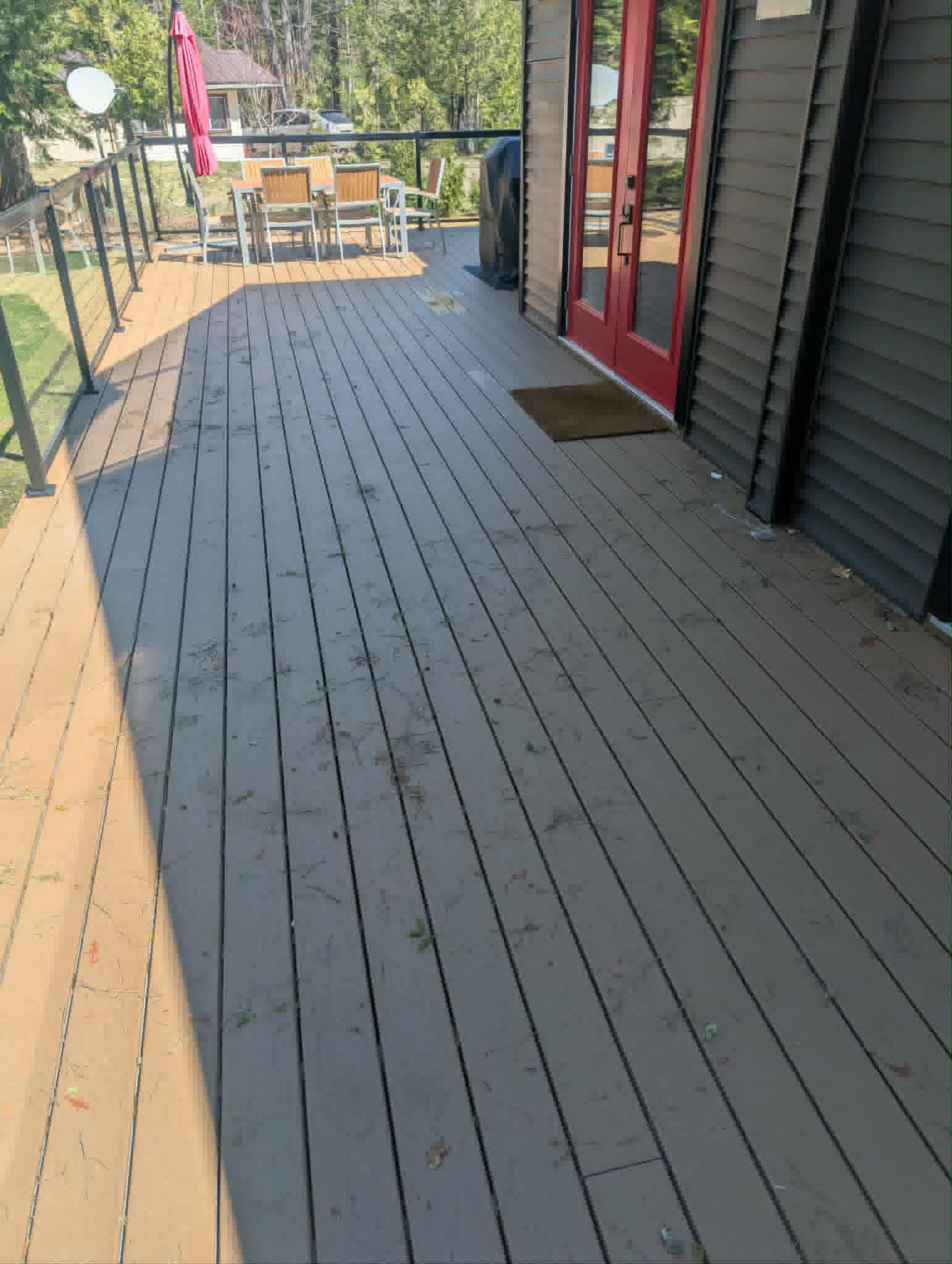 For this project in Ennismore, ON, Professional Pride Pressure Wash performed a softwash cleaning on the home’s siding and composite deck. The goal was a thorough, yet gentle cleaning that would remove organic buildup without stressing exterior materials. We focused on restoring the surfaces by removing the organic materials that had accumulated on the soffits, siding, and decking.